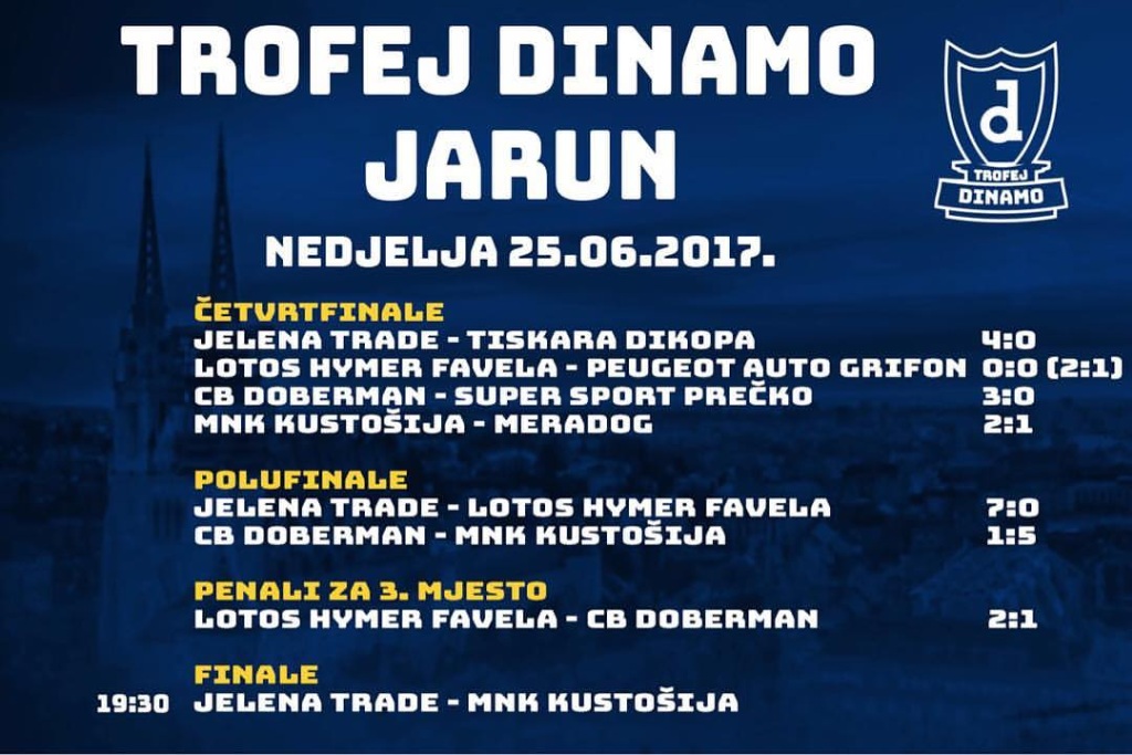 Nakon četiri dana borbe i u stilu Wimbledona odgođenog finala, dobili smo osvajača i trećeg turnira u sklopu Trofeja Dinamo. U velikom finalu na Jarunu sučelili su se Jelena Trade i MNK Kustošija, ekipe koje su u furioznom stilu ušle u borbu za prvo mjesto. Dečki s Kustošije na kraju su bili spretniji poslije penala, dok je nakon dvaput po 15 minuta bilo 2:2.